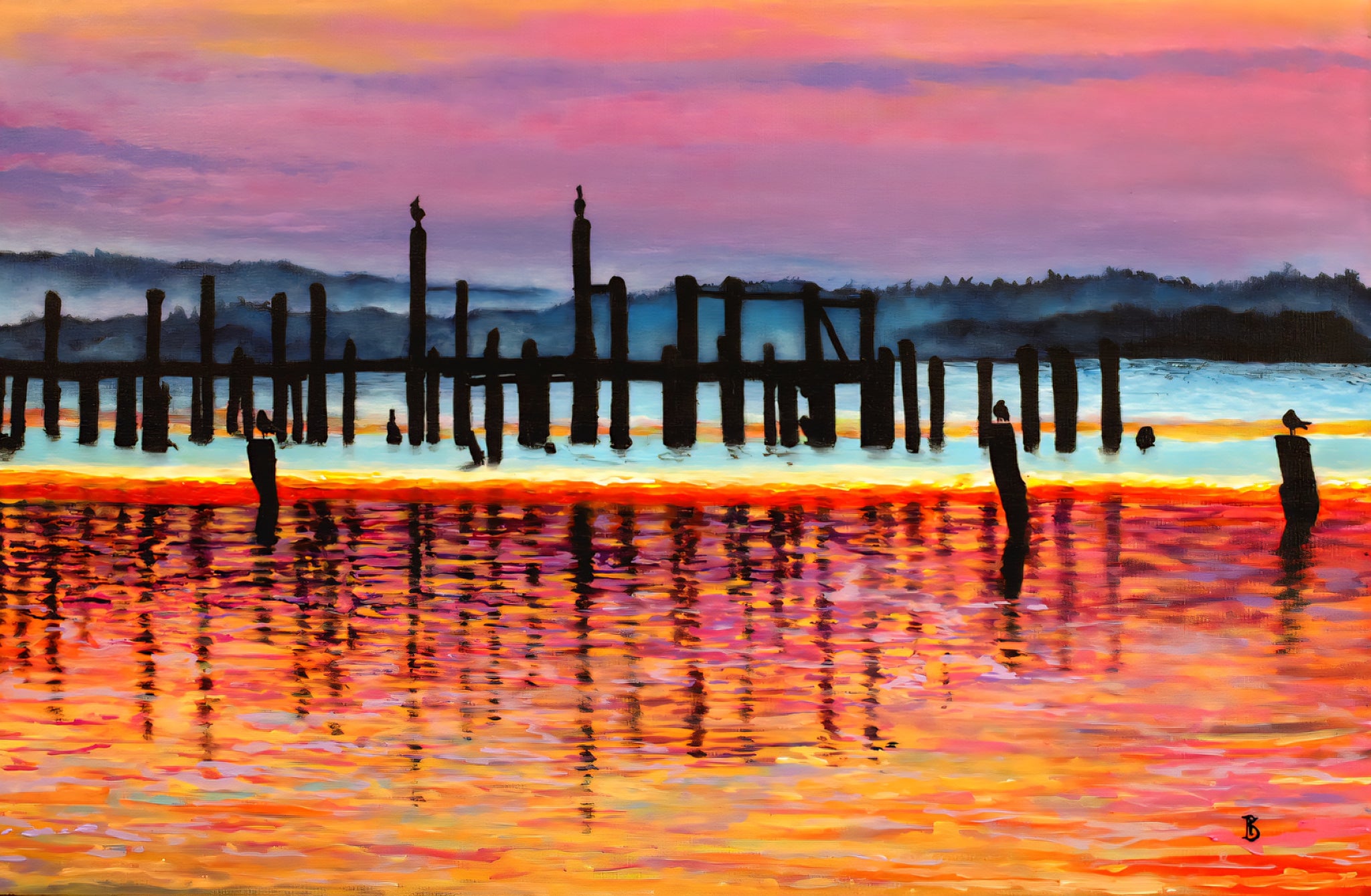 30×48 acrylic on canvas. This painting inspired by local photography by Robert Aarikson hangs at Canal Quarter Arts here in Fredericksburg. I just loved the pastoral colors in the image and it gave me inspiration to get back to work after a short break. Was so fun seeing it come together over the few days as I painted it. Please feel free to purchase prints or a hand touched geclee of this original.